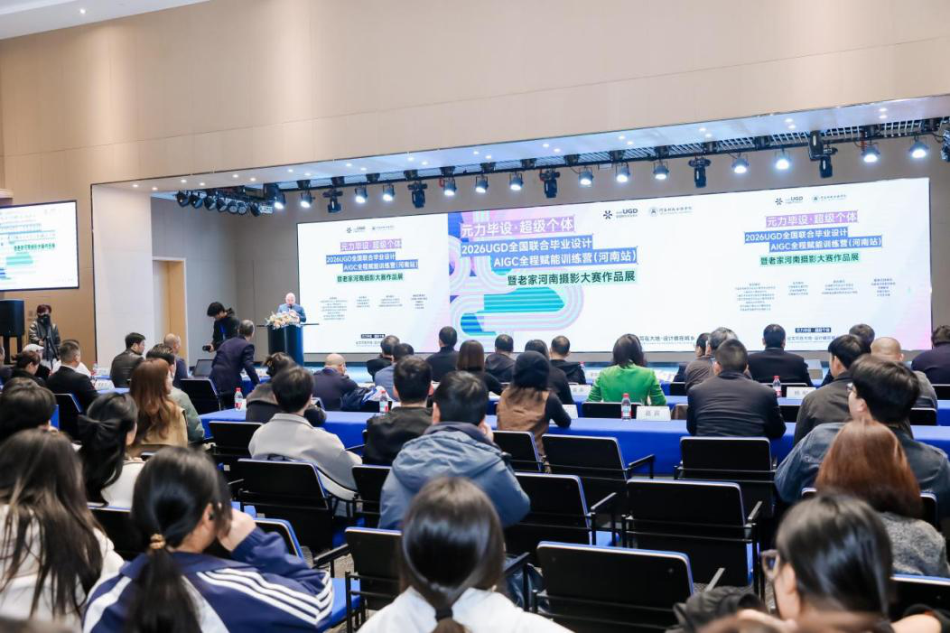 近日,2026 UGD全国联合毕业设计河南站启动仪式、2025“老家河南”摄影大赛作品展及“AIGC驱动设计学科创新与人才培养变革”学院院长论坛在郑州龙子湖高校园区同步举行。艺术学院院长张鹏出席活动,并为2025“老家河南”摄影大赛国赛等级奖获奖代表颁奖。艺术学院李好敏、卞卡等9位教师荣获“UGD全国联合毕业设计指导教师特别贡献奖”。