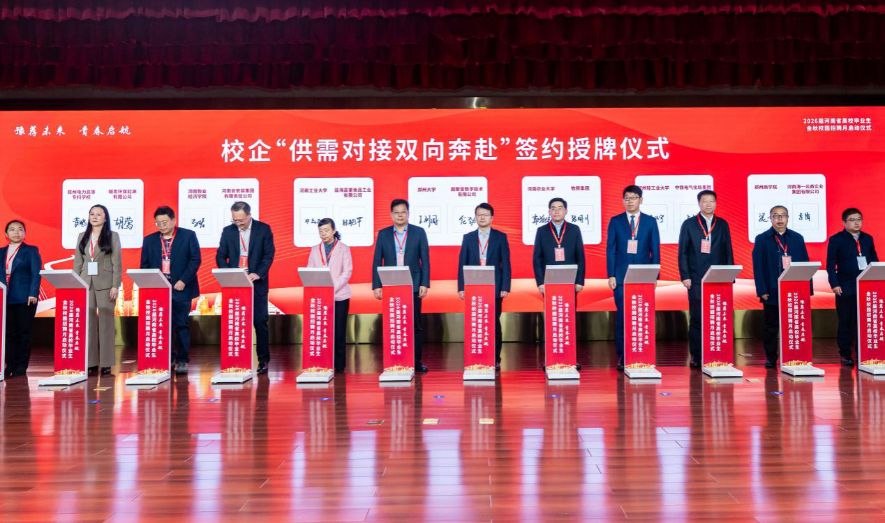 10月17日,由河南省教育厅主办的2026届河南省高校毕业生金秋校园招聘月启动仪式在河南工业大学隆重举行。我校副校长马珺应邀参加启动仪式和校企“供需对接双向奔赴”签约授牌活动,大学生就业创业指导服务中心负责人及就业教研室主任、就业骨干教师代表一同参加了启动仪式。