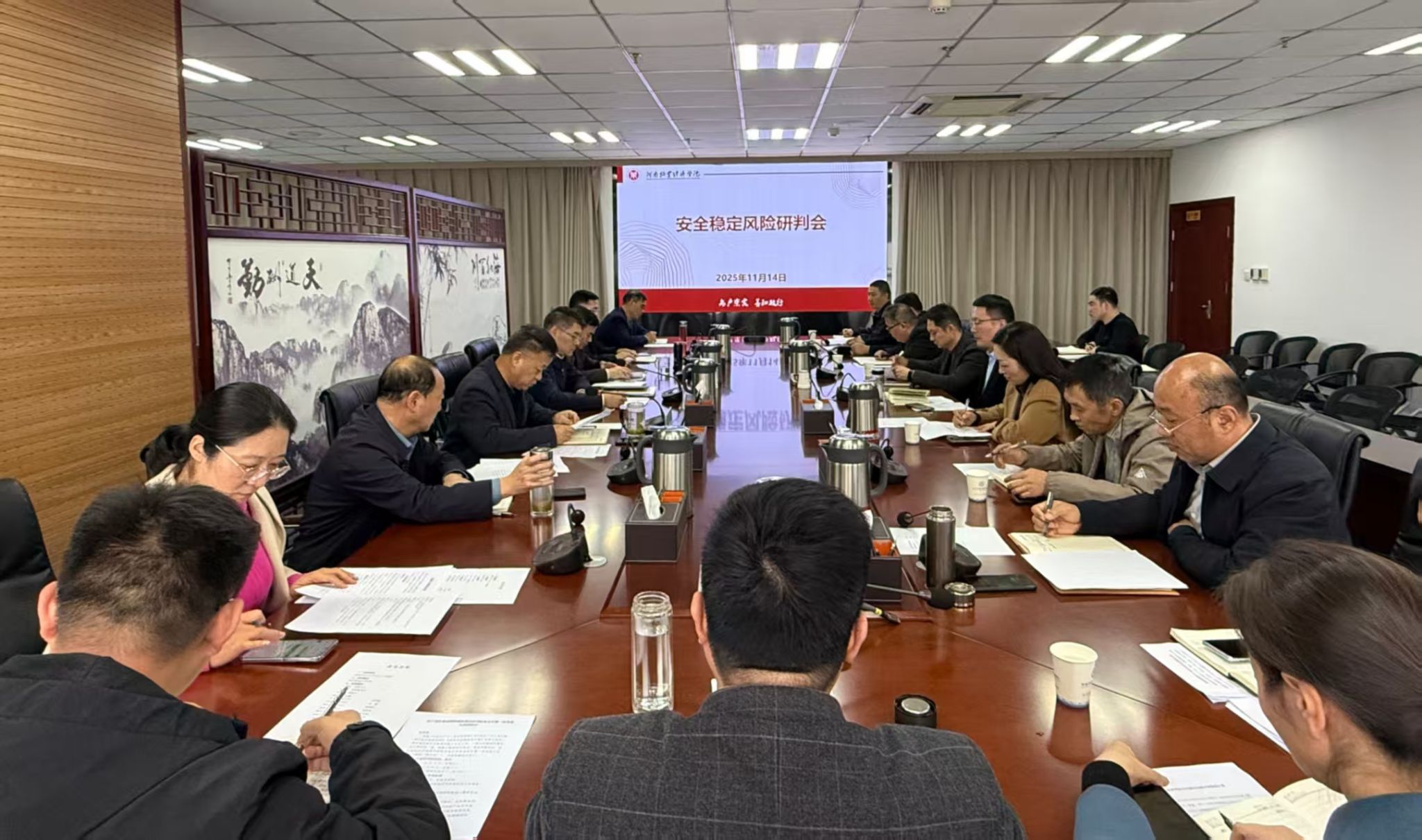 会议强调,一要提高站位夯实安全基础。切实把安全稳定工作抓紧抓实,坚决履行“促一方发展、保一方平安”的政治责任,以高水平安全护航学校事业高质量发展。二要强化警醒筑牢风险防线。建立常态化的风险排查和调度机制,着力抓早抓小、防微杜渐,坚决防范各类风险隐患演化升级。三要压实责任织密工作体系。将安全稳定任务细化到具体岗位、具体环节,做到岗位明责、人人尽责、层层负责,确保各项措施落实到位。四要紧盯重点加强排查整治。聚焦消防安全、食品安全、焦实验室安全等关键领域,定期开展排查,精准找准薄弱点和风险点,确保整改措施明确到人、落实到位。