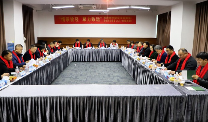 2月1日,由我校校友企业家联盟主办、商丘美兰生物股份有限公司承办的“情系牧经 聚力致远”校友企业家联盟理事长办公(扩大)会暨2026年新春联谊会在聚方科技园成功举办。校长尹新明、副校长席磊出席会议,与我校校友企业家联盟30余名代表齐聚一堂,共忆母校情谊,同绘发展蓝图。