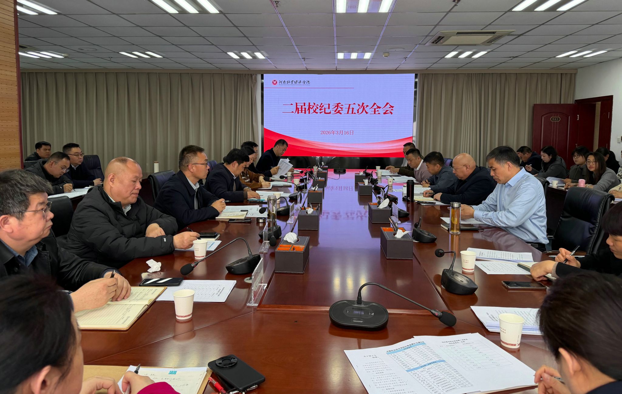 3月16日,学校在图书馆841会议室召开二届纪委五次全会。校纪委书记、监察专员韩永刚出席会议并讲话。校纪委委员、基层党组织纪委书记、纪检委员和全体专职纪检监察干部、巡察干部参加会议。会议由校纪委副书记胡蕾主持。
