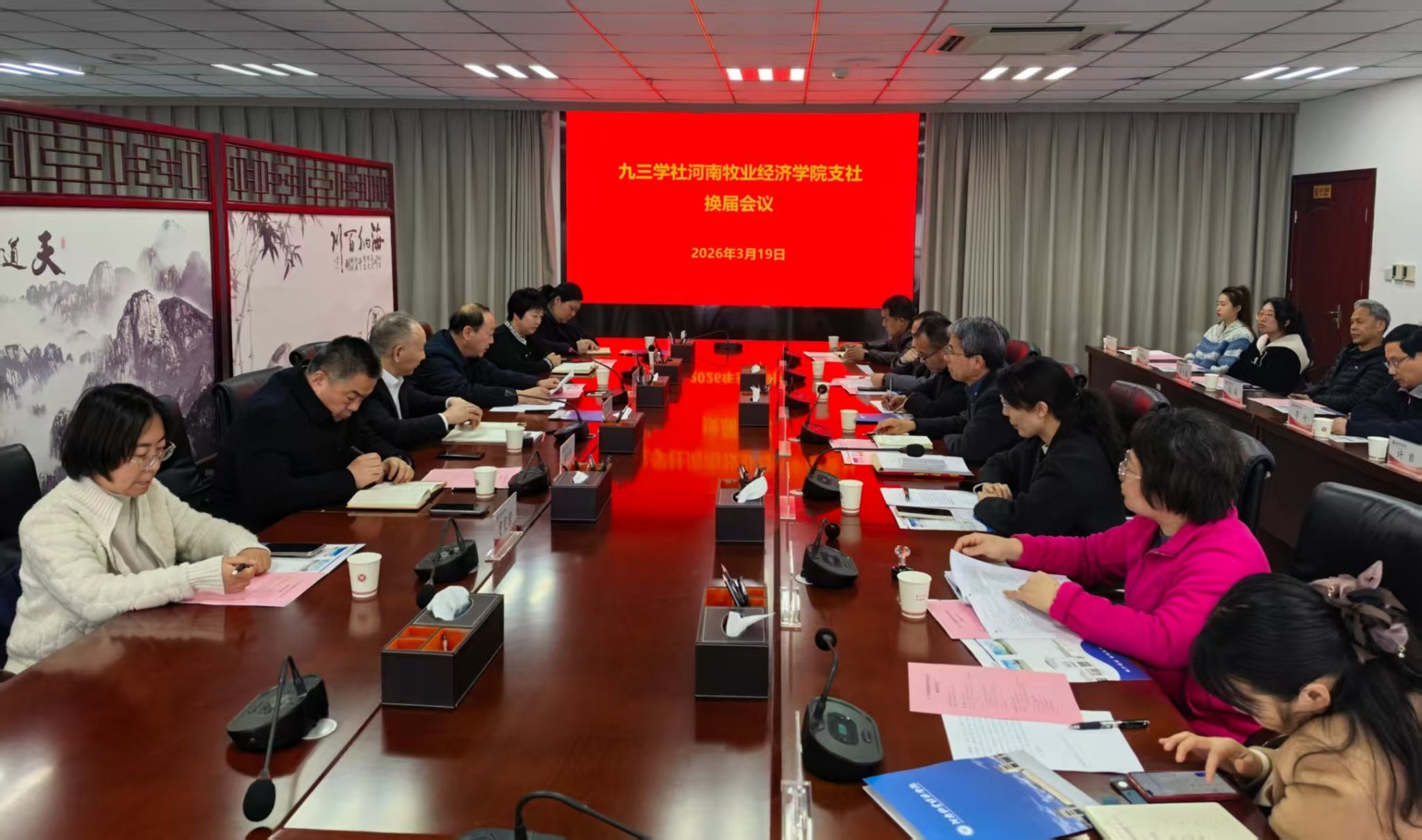 3月19日下午,九三学社河南牧业经济学院支社在龙子湖校区图书馆841顺利召开换届选举会议。九三学社河南省委专职副主委王治华,九三学社省农科院委员会主委、省农业科学院农产品加工研究中心副主任黄纪念,九三学社河南省委组织处一级调研员苗红娣,我校党委统战部常务副部长姬道兴,以及九三学社河南牧业经济学院支社全体社员参加会议。