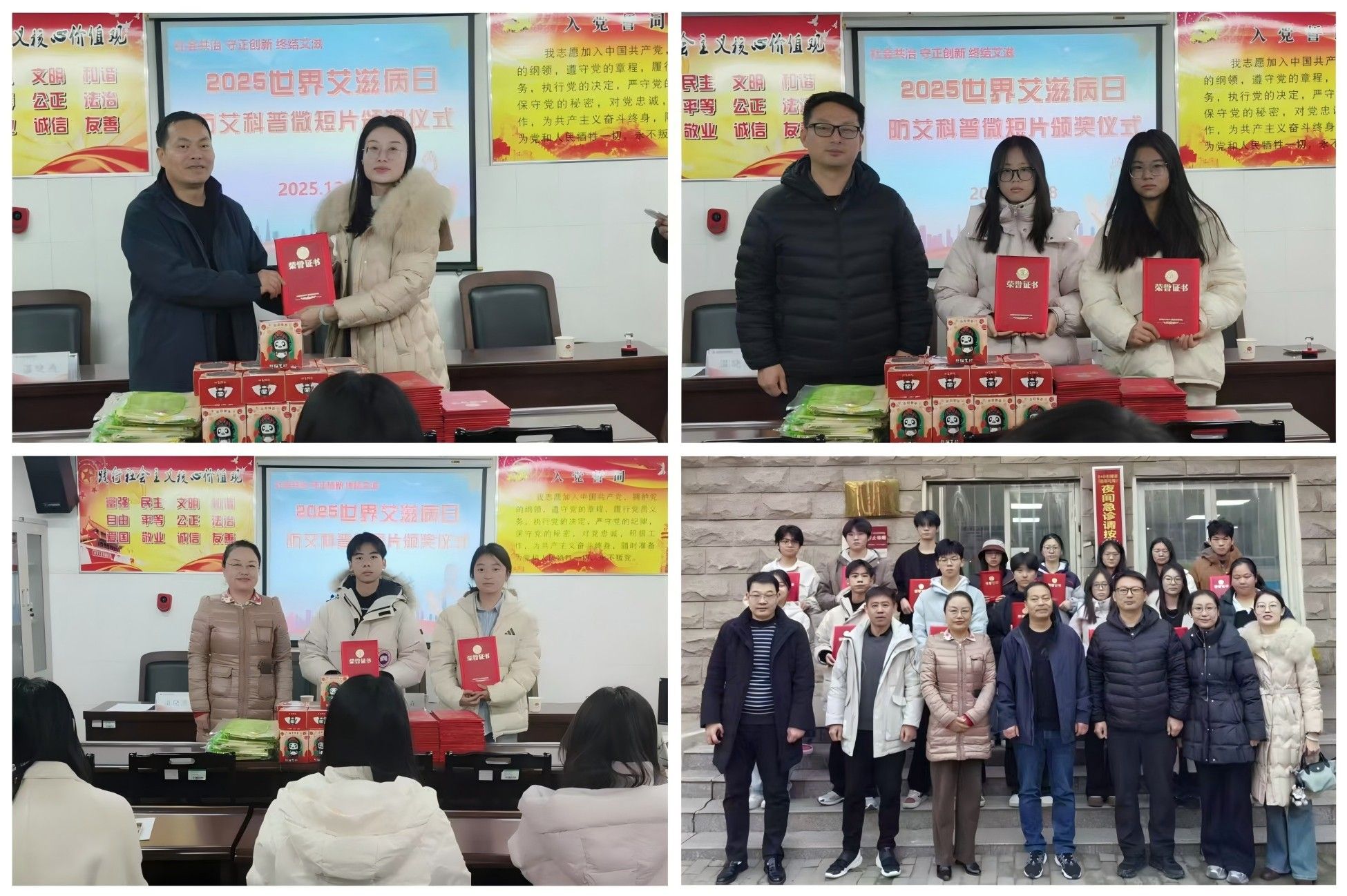 12月18日上午,我校2025年防艾科普微短片征集活动颁奖仪式在校医院会议室举行。校团委书记王森、校医院院长温晓燕、惠济区疾控中心主任冯春明出席颁奖仪式。