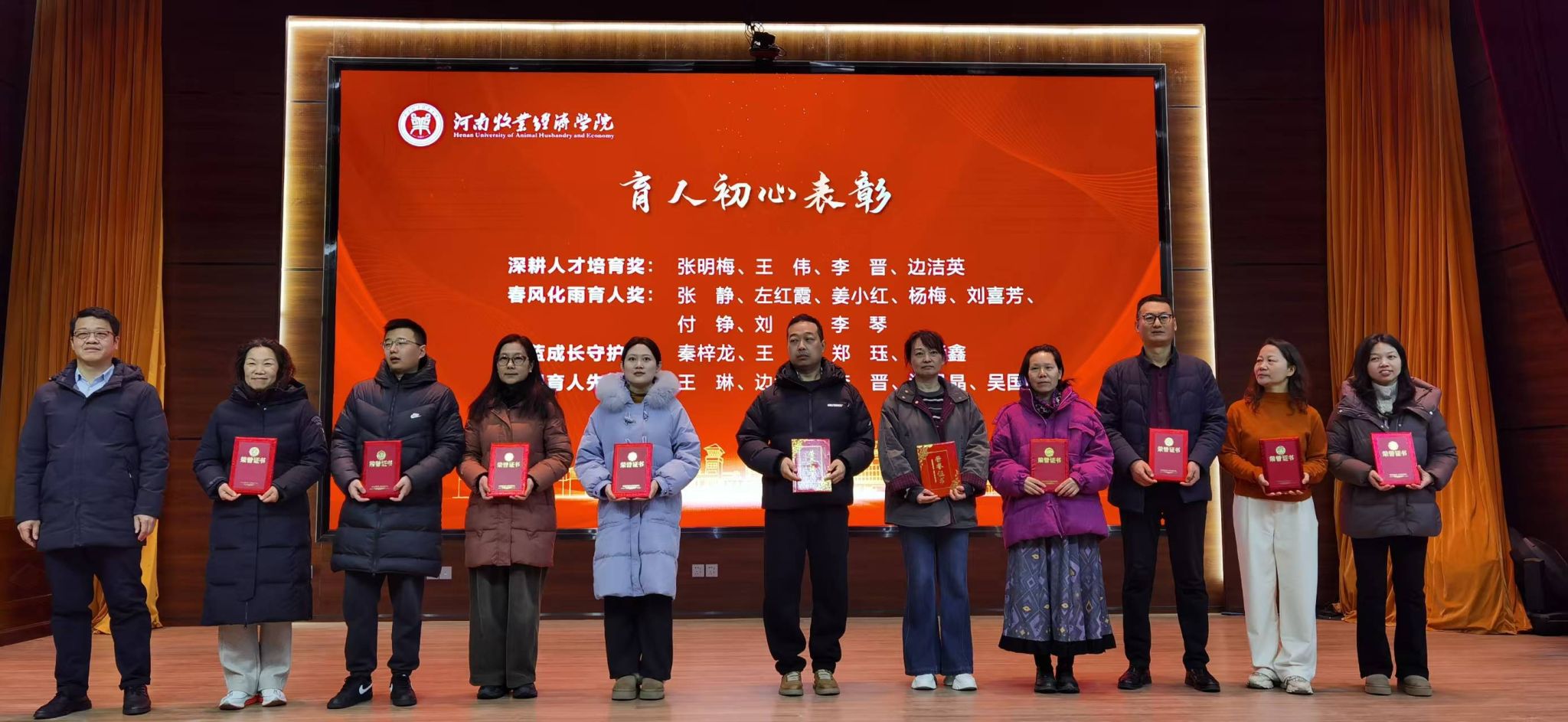 为表彰先进,提振士气,本次表彰大会分别聚焦教学创新与实践能力、人才培育与师生关怀、科研项目执行成效、协同合作与社会服务等方面设置了桃李芬芳卓越奖、真知教学创新奖、新锐教学奖、课堂融合创新奖、春风化雨育人奖、协同育人先锋奖、全程护航导师奖、科研先锋奖、科研新锐奖等多类荣誉奖项,使教师们的每一份付出都被看见,每一份坚守都被尊重。颁奖仪式上,掌声不断、敬意不止。荣誉证书的背后,凝聚着汗水和智慧,承载着责任与担当,这不仅是对获奖教师个人辛勤付出的肯定,更是对全院教职工坚守教育初心、担当育人使命的激励与鼓舞。