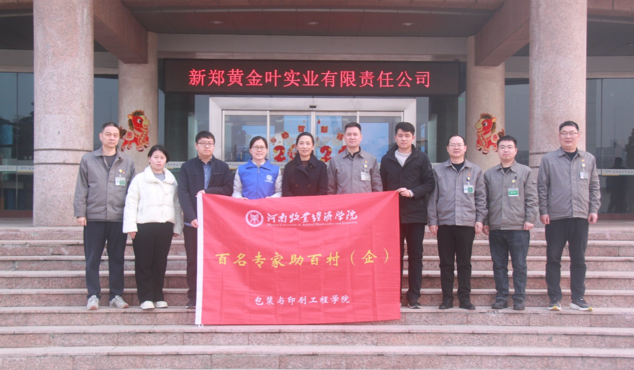 为深入贯彻落实学校“双百工程”工作部署,精准对接产业发展人才与技术需求,近日,包装与印刷工程学院院长张岩一行5人,赴新郑黄金叶实业有限责任公司调研交流。