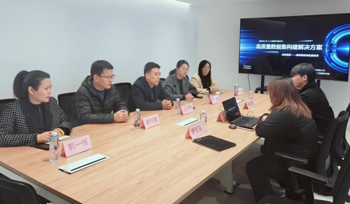期间,汪晓伟、胡晓波一行参观了企业办公环境与数据作业区,了解数据标注流程与人工智能基础数据服务的应用场景,并认真听取企业负责人关于校外实践基地项目的详细介绍,现场观看了数据标注平台的实操演示,深入感受企业在数据服务领域的应用成果。