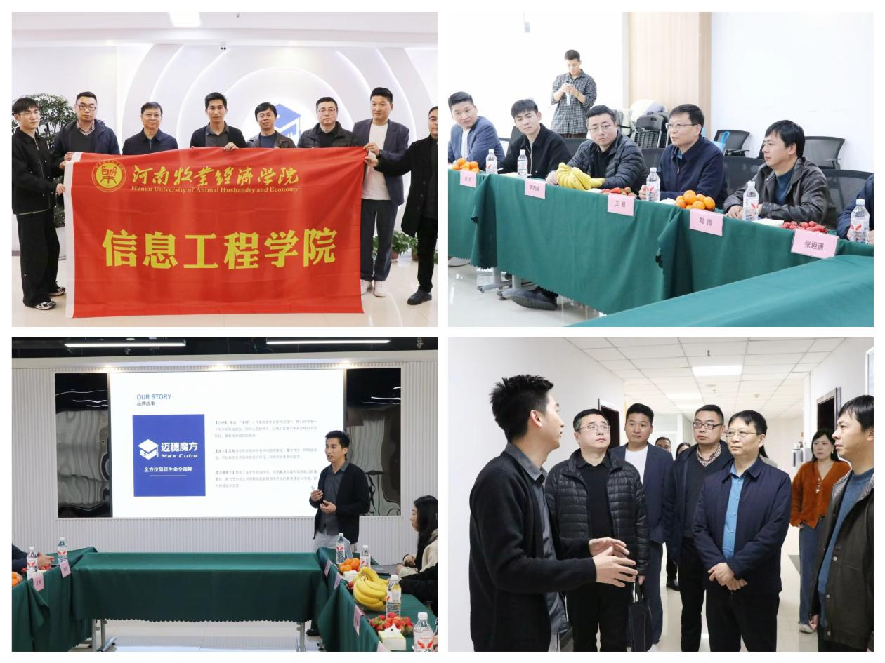 为深化产教融合、校企合作,拓宽毕业生就业渠道,近日,信息工程学院院长王硕、校友办副主任刘博一行5人赴校友企业——迈穗魔方(河南)教育科技有限公司访企拓岗。